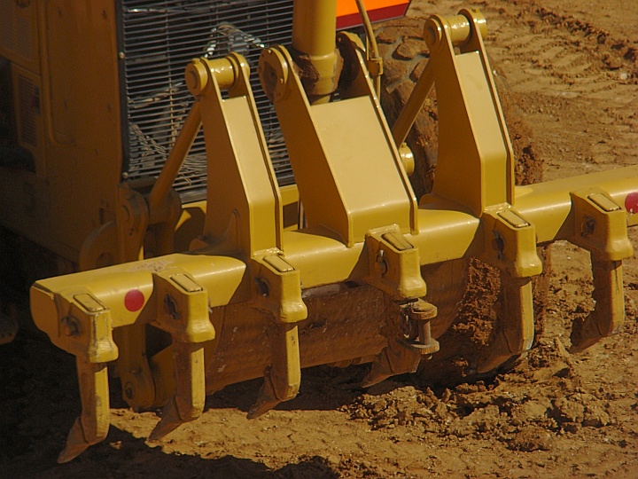 These teeth are on the back of a scraper/grader; it uses them to loosen the earth so it can push it around more easily.