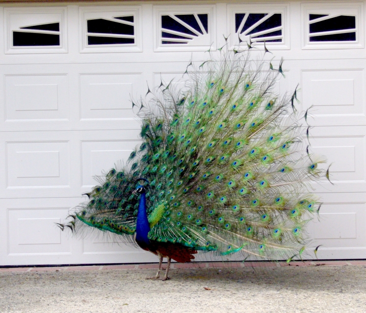 Peacocks show off like this only very rarely. It's not clear why or when they decide to do it.