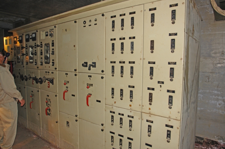 This is the entire control panel. The person at left is using a flashlight because there was no light in the room at all.