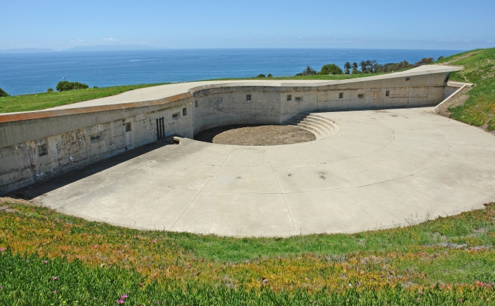 Broad view of Battery Farley gun mount. You can clearly see how much of the ocean this gun can cover. Catalina island is barely visible at left; it's about 26 miles out to sea.