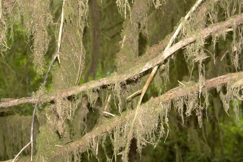 There are many kinds of moss covering most of the trees in the raiforest.