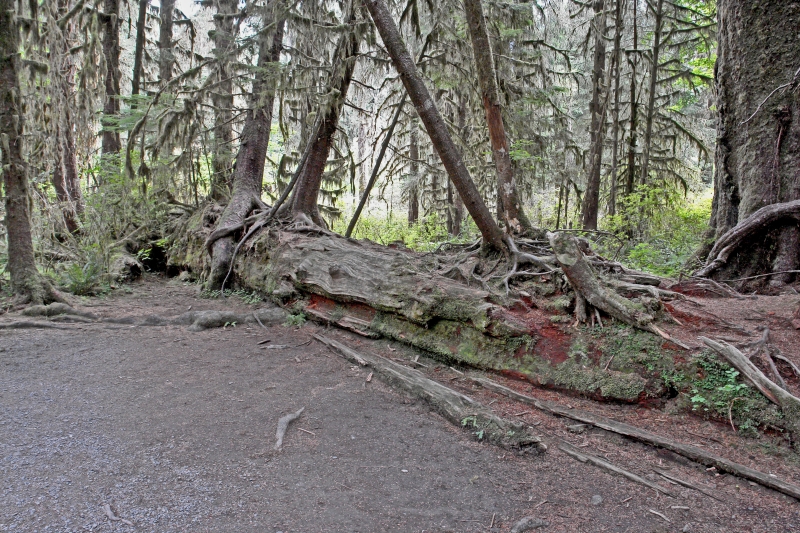 Several young trees are growing from the fallen older tree. Such trees are called nurse logs.