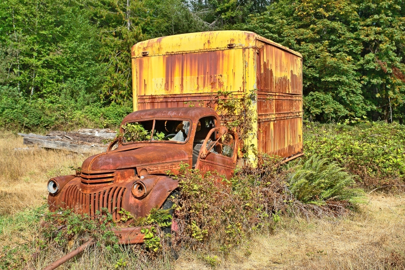 There was an old homestead in the park, abandoned in the 1960's, a family used to do some farming and ranching. This might have been the truck they used to make deliveries for their produce.